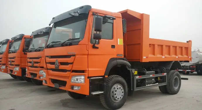 Sinotruk Howo 4X2 Dump Truck has its flexibility for short distance transport and suitable for narrow area. Best choice for small tonage and village construction purpose. Used to convey loose materials like sands, pebbles, soils, building materials, coals, ores, crops, farm products, etc. A dump truck is usually installed with a hydraulic motivated open-box bed hinged at the rear. The front of this open-box can be lifted up so that the materials are discharged on the ground behind the truck.