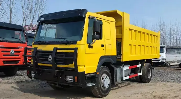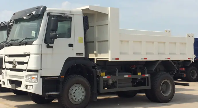 Sinotruk Howo 4X2 Dump Truck has its flexibility for short distance transport and suitable for narrow area. Best choice for small tonage and village construction purpose. Used to convey loose materials like sands, pebbles, soils, building materials, coals, ores, crops, farm products, etc. A dump truck is usually installed with a hydraulic motivated open-box bed hinged at the rear. The front of this open-box can be lifted up so that the materials are discharged on the ground behind the truck.